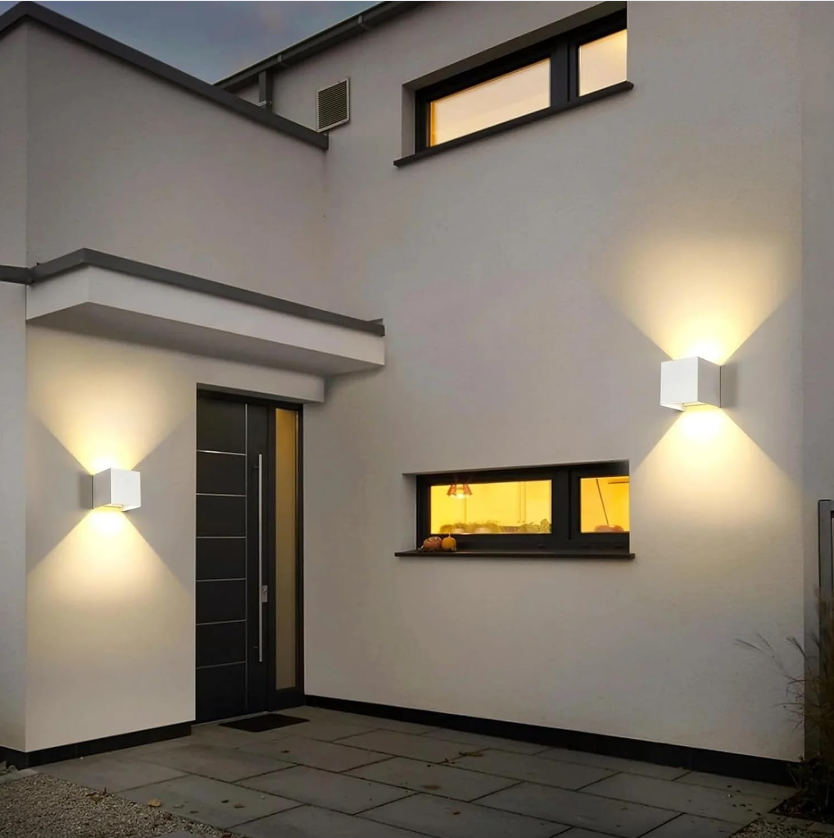 SKD Outdoor Waterproof Wall Light Dust Proof Cube Wall Sconce square Lighting 6w Black White Marble Outdoor/indoor Up-down Light