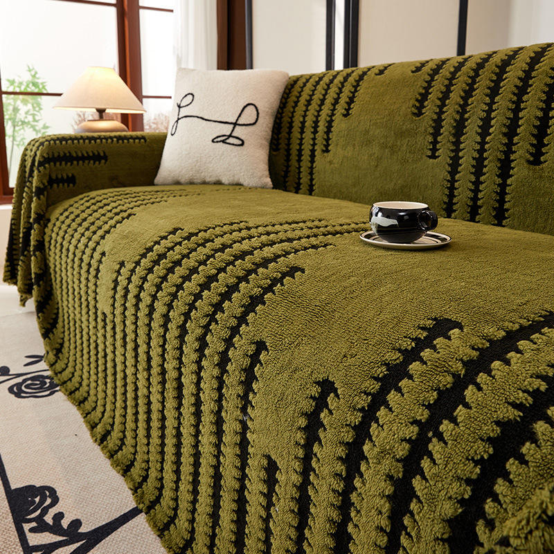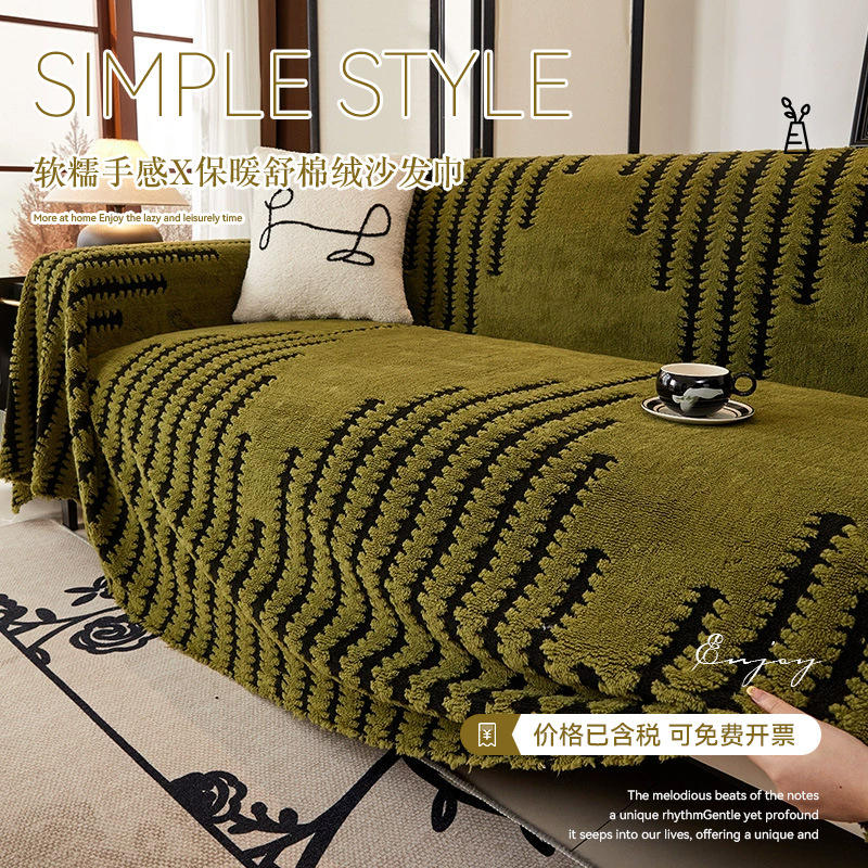 SKJiejiegao Plush Sofa Cover Modular Pad Type Striped Solid Color Washable Cotton Fleece Furniture Cover