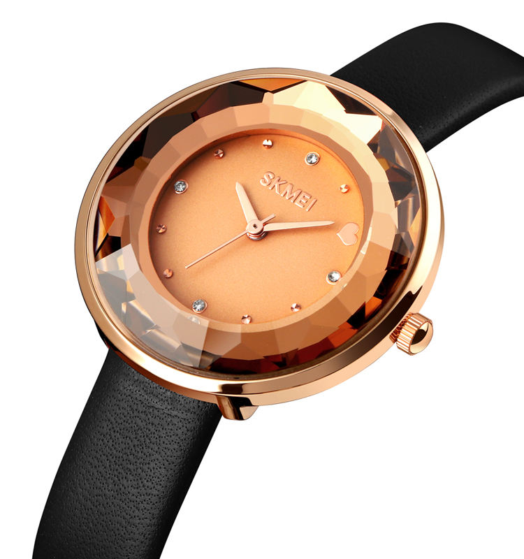 SKMEI 1707 Fashion Women Leather Stainless Steel Luxury Quartz Watches for Ladies