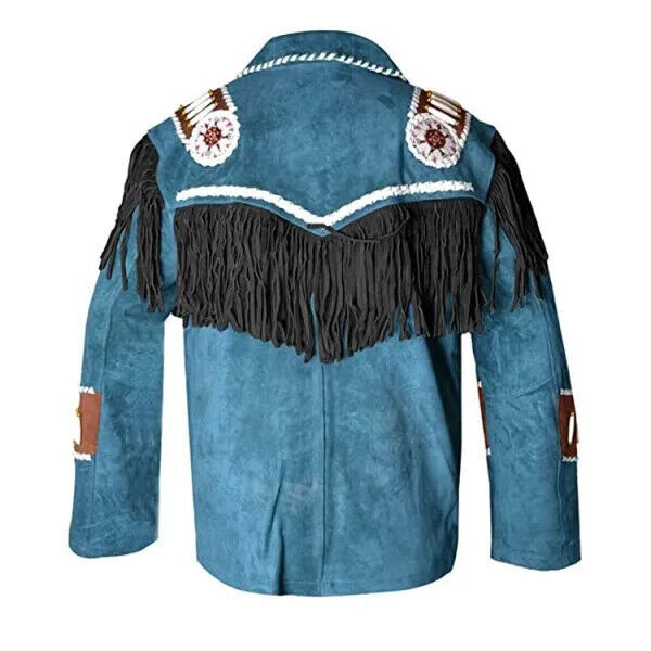 SKY HIGH INTERNATIONAL 2025 Latest Style Men's High Quality Long Western Fringed Beaded Cow Suede Leather Jacket Waterproof