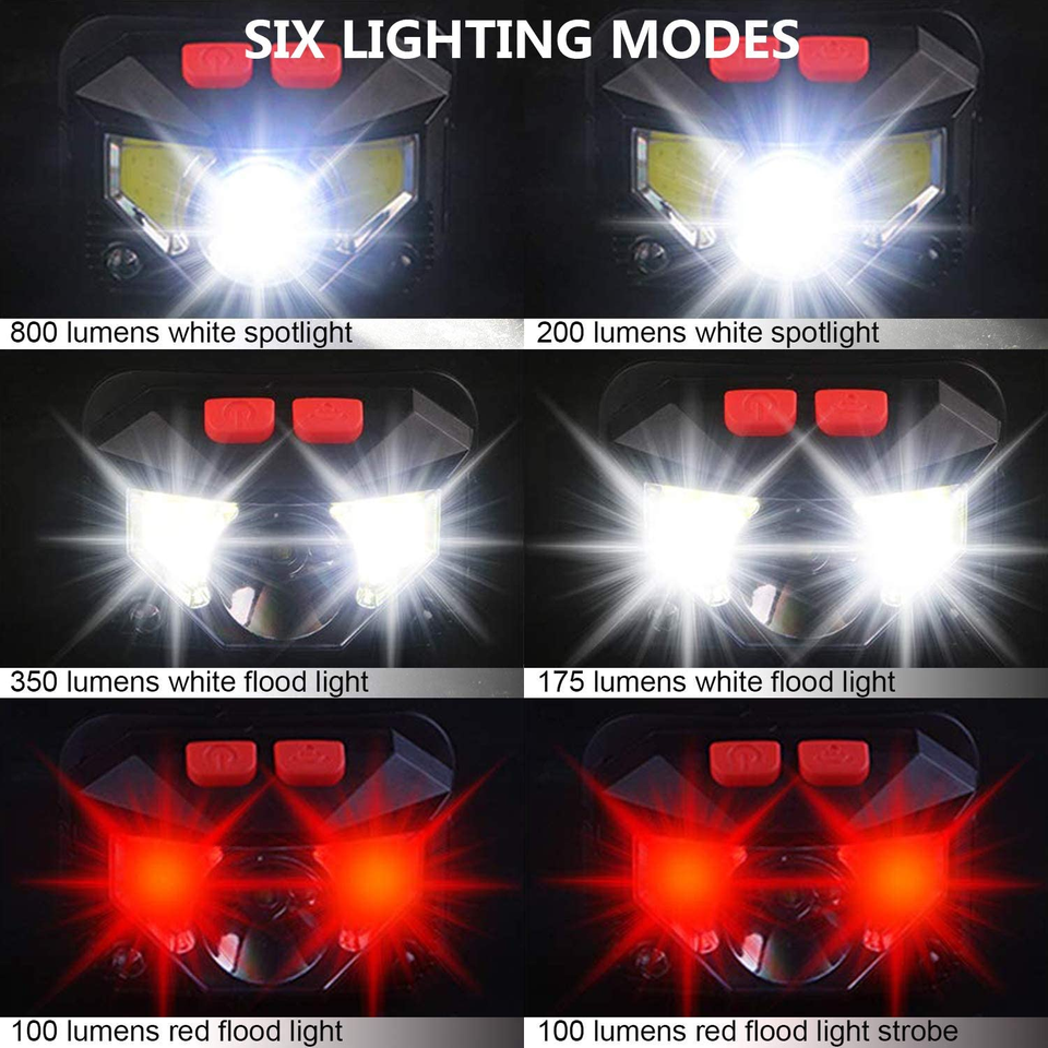 SKY-TOUCH 2-Pack 800 Lumens Rechargeable Headlamp Flashlight IPX4 Waterproof Bright White for Cree LED Motion Sensor Head Lamp