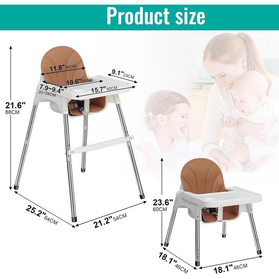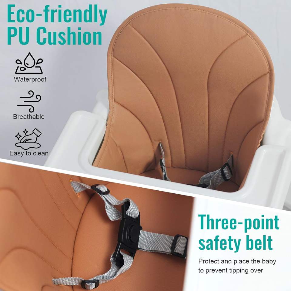 SKY-TOUCH 2-in-1 Baby High Chair with Removable Tray and Adjustable Height 3-Point Safety Dining Chair Featuring Wheels