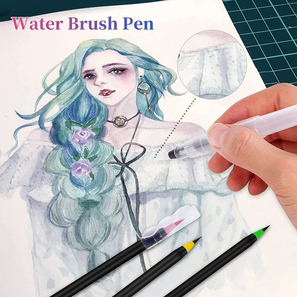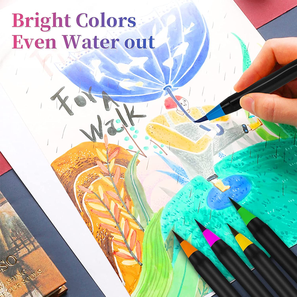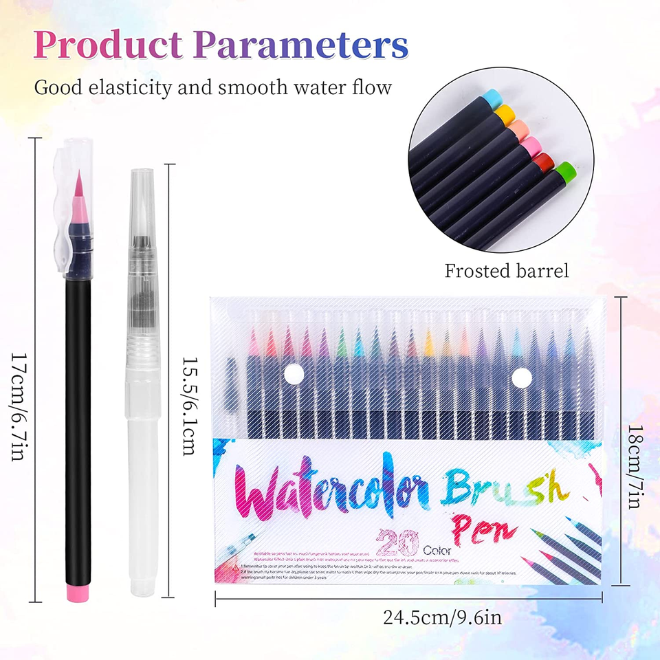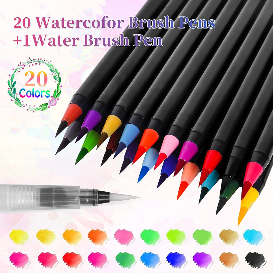 SKY-TOUCH 20-Piece Brush Pens Set Water Color Markers for Calligraphy Hand Lettering Drawing Manga