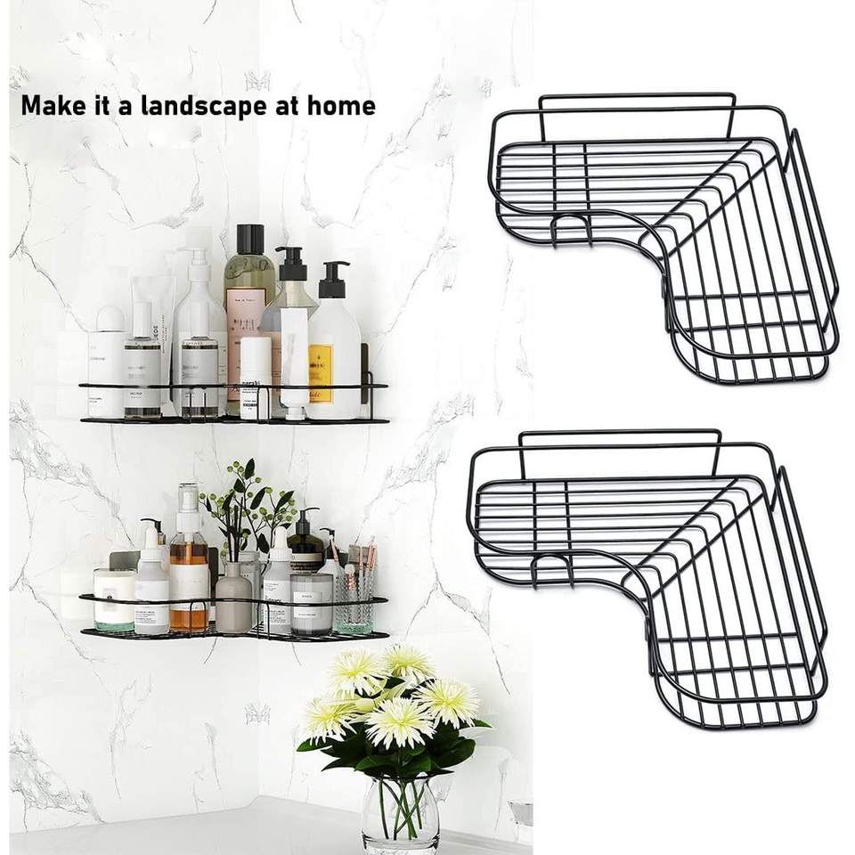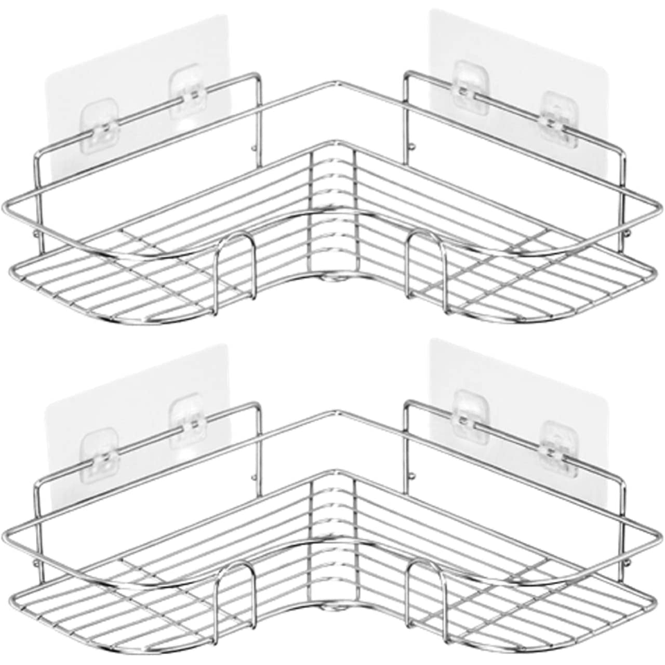 SKY-TOUCH 2pcs Self-Adhesive Iron Silver Shower Shelf Organizer Wall-Mounted Corner Storage Enhance Your Bathroom Experience