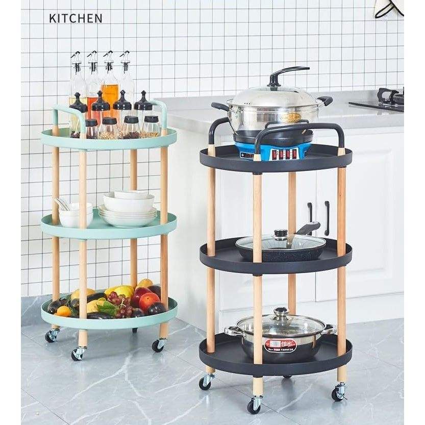 SKY-TOUCH 3-Tier Round Rolling Storage Organizer Multi-Functional Utility Cart with Lockable Wheels 1000g for Bathroom Use