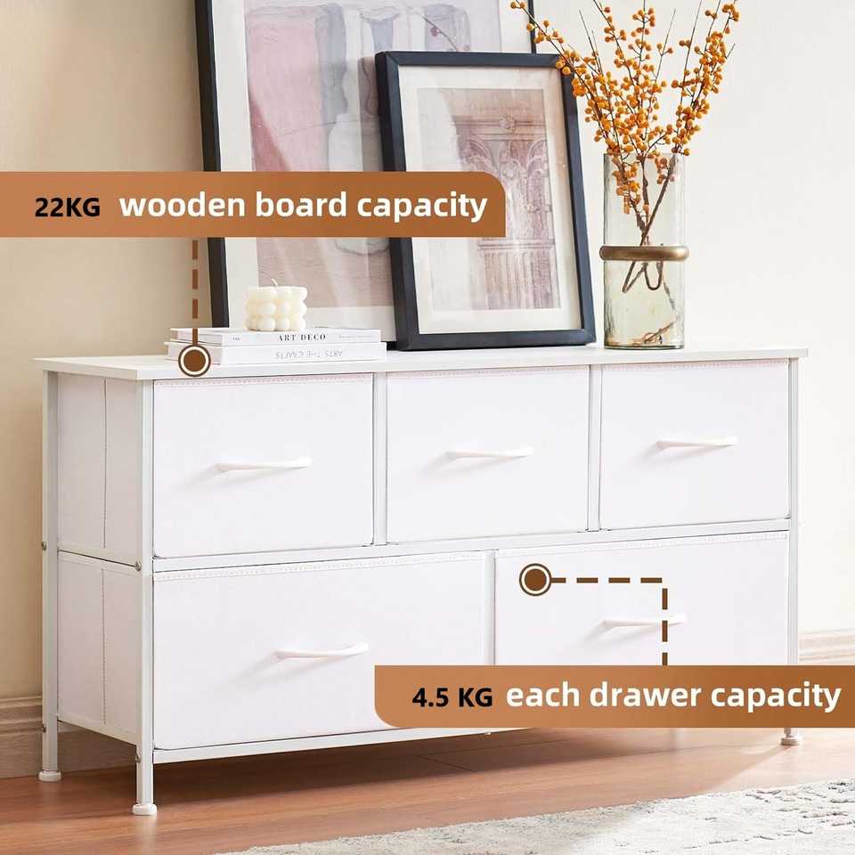 SKY-TOUCH 5-Drawer Bedroom Dresser Wide Storage Chest with Removable Fabric Bins Living Room Cabinets Organizer Unit
