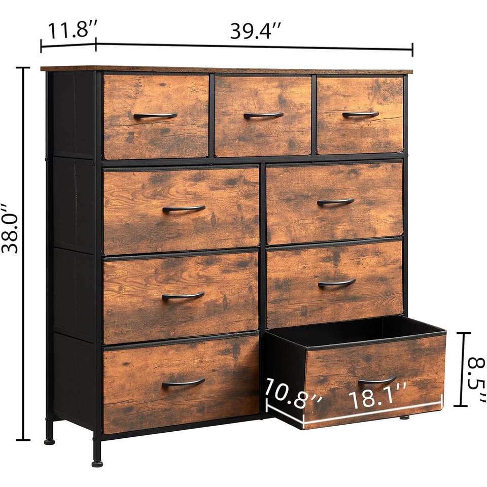 SKY-TOUCH 9-Drawer Metal Storage Cabinet MDF Wood Style Bedroom Dresser with Removable Fabric Bins Wide Chest Organizer Unit