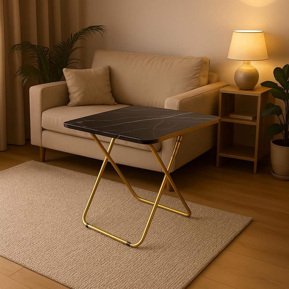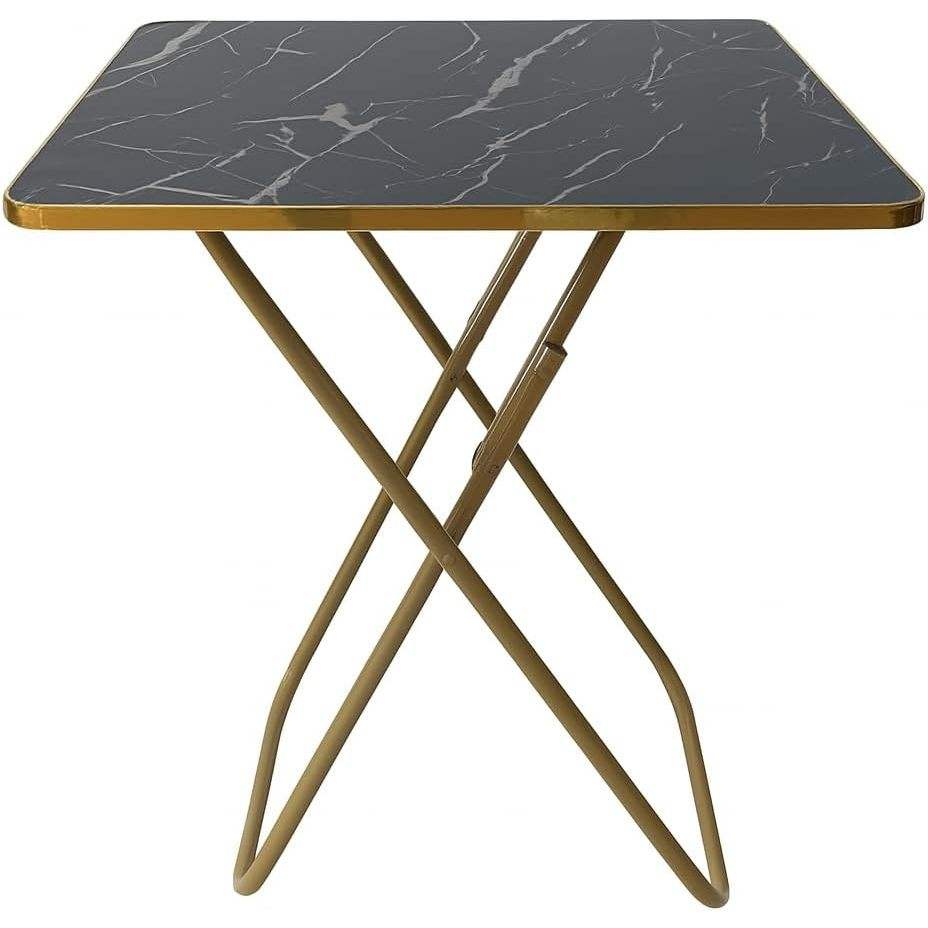 SKY-TOUCH Multi-Purpose Folding Table Black Marble-Look Wood Top with Gold Metal Frame for Iftar Prayer Dining or Sofa