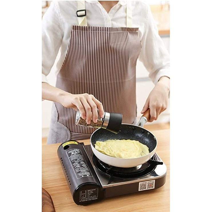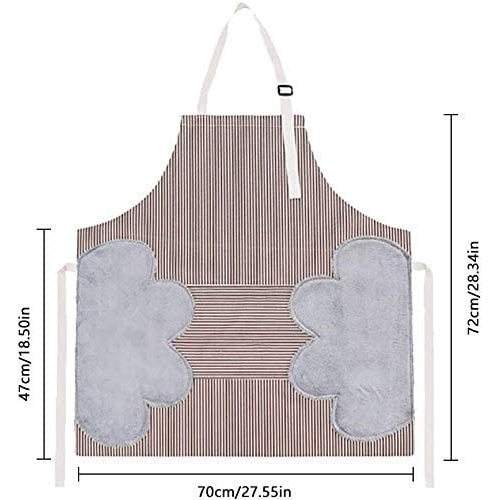SKY-TOUCH Retro Kitchen Apron 2 Side Bib with Adjustable Pockets Coral Velvet Waterproof Towels Pinstripe Stitched Wipe Hands