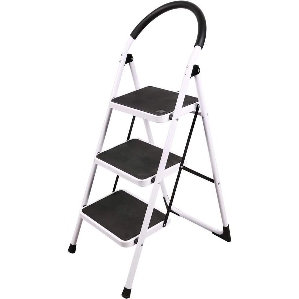 SKY-TOUCH TRADING FZE 4kg Foldable Steel Ladder 3-Step Home Step Stool with Wide Anti-Slip Pedal Certified EN131 for Adults