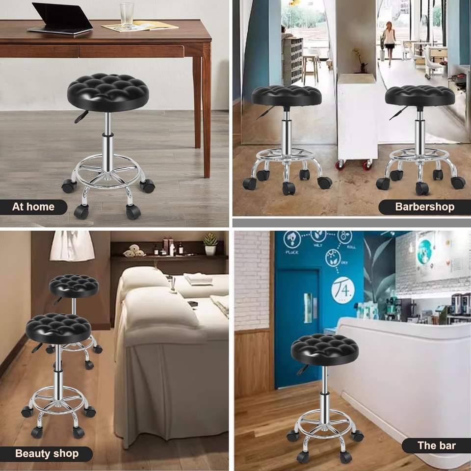 SKY-TOUCH TRADING FZE Round PU Leather Vanity Chair 360 Swivel Height Adjustable Rolling Stool 1000g for Office/Home Use