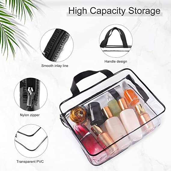 SKY-TOUCH TRADING FZE SKY-TOUCH Portable Clear Cosmetic Bag 3pcs Rectangle Travel Pouch Zipper Carry Handle for Bathroom Use