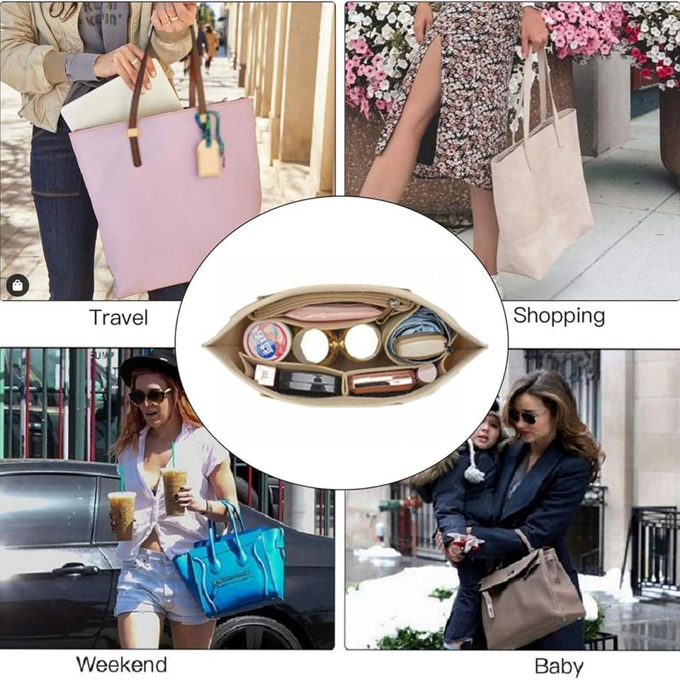 SKY-TOUCH Women's Tote Bag Organizer Insert Large Handbags Base Shaper with Multi-Pocket and Zipper Convenient Access