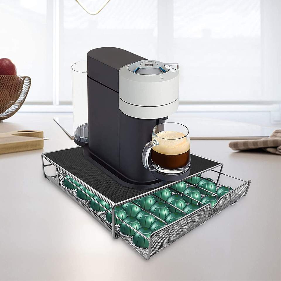SKY-TOUCH Wood and Ceramic 36-Pcs Coffee Pod Drawer Space-Saving Kitchen Organizer for Coffee Capsules