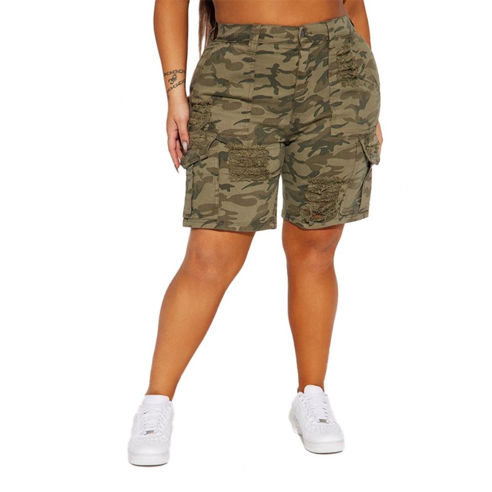 SL Custom Logo Sexy Breathable High Waist Distressed Camouflage Tactical Cargo Shorts