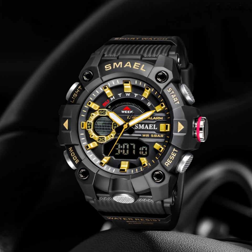 SMAEL 8040 5ATM Waterproof Men's Sports Fashion Watch LED Luminous Chronograph Alarm Stop Watch