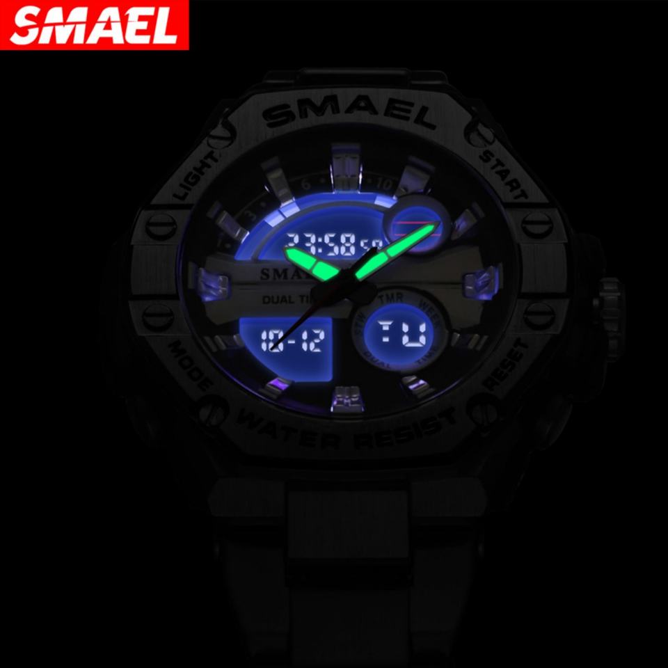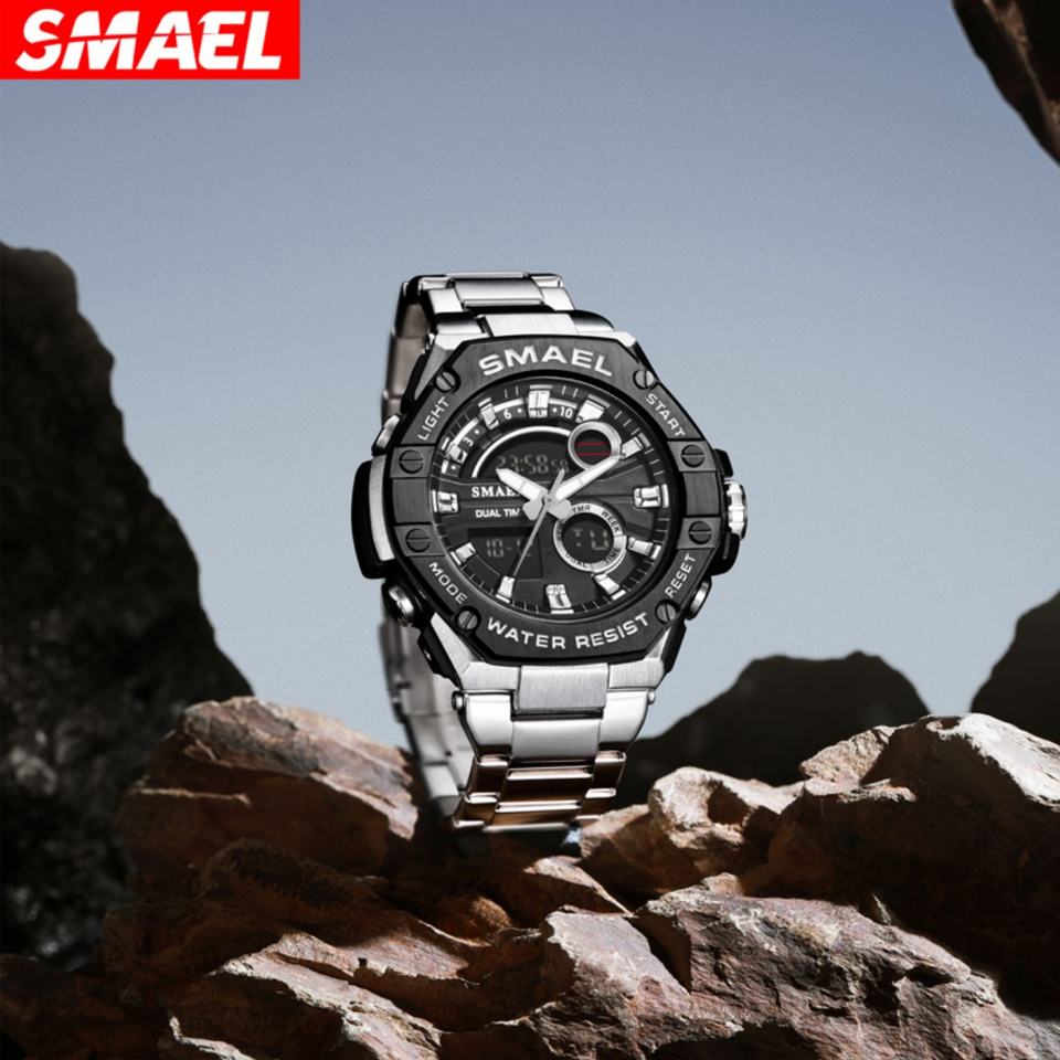 SMAEL Alloy Quartz Watch 8090 Stainless Steel Band Cartoon Coin Design Men's Watch 50 Bar Water Resistance Analog Digital