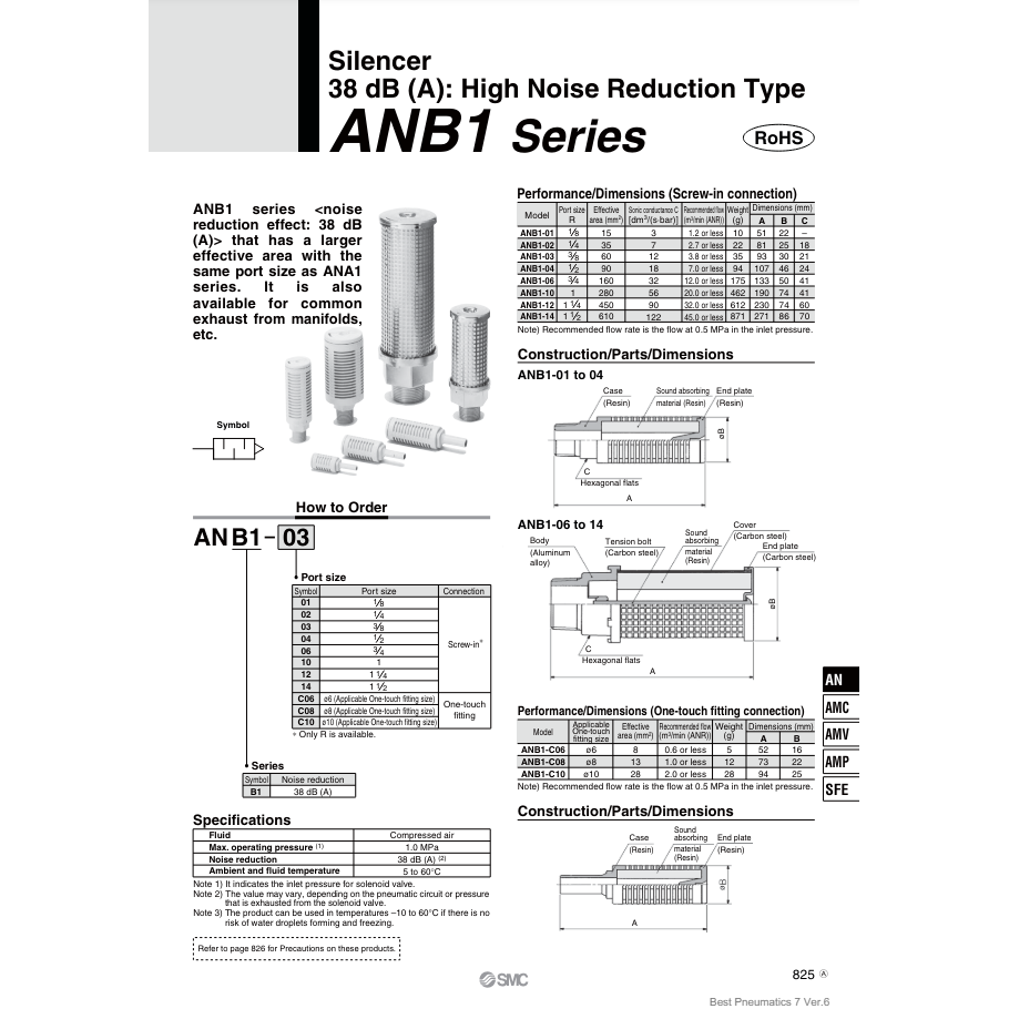 SMC Pneumatics ANB1-06 Silencer Noise Reduction Device