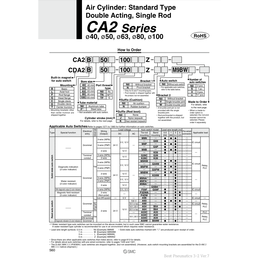 SMC Pneumatics Air Cylinder CDA2T50-125Z