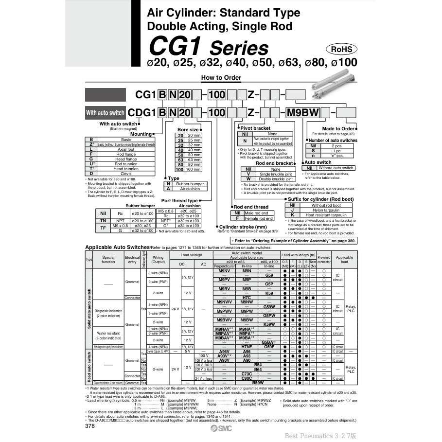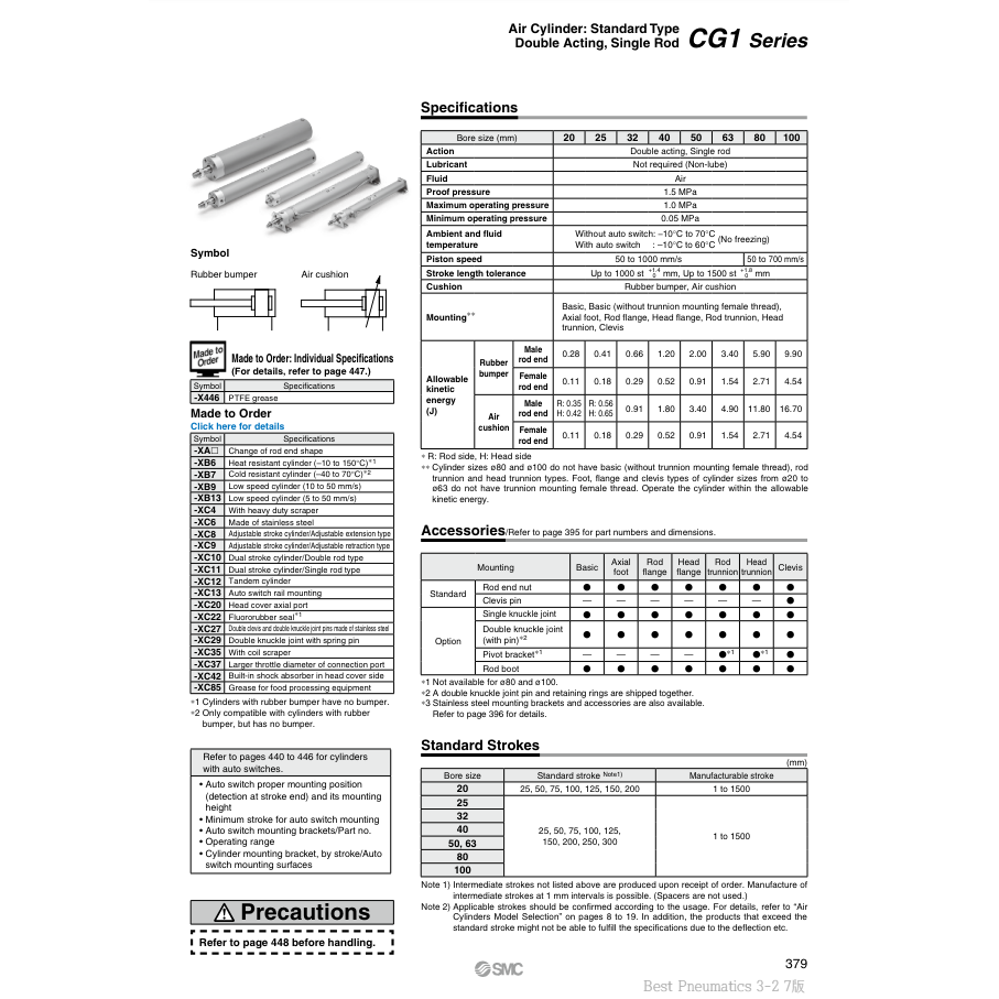 SMC Pneumatics Air Cylinder CDG1BA20-100Z Pneumatic Parts