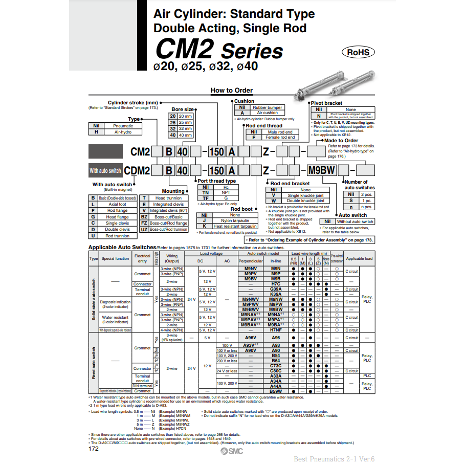 SMC Pneumatics Air Cylinder Model CM2B20-200Z Pneumatic Parts
