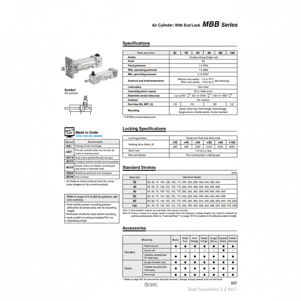 SMC Pneumatics Air Cylinder Model MDBBC100-280-HN