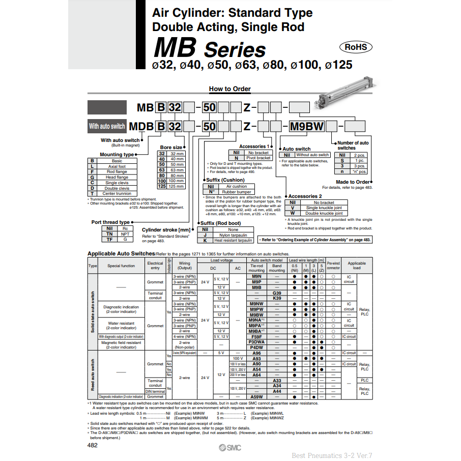 SMC Pneumatics Air Cylinder Model MDBT40-180Z