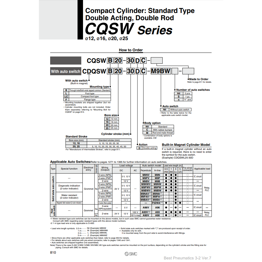 SMC Pneumatics Compact Cylinder CDQSWB12-10D High Quality Pneumatic Parts