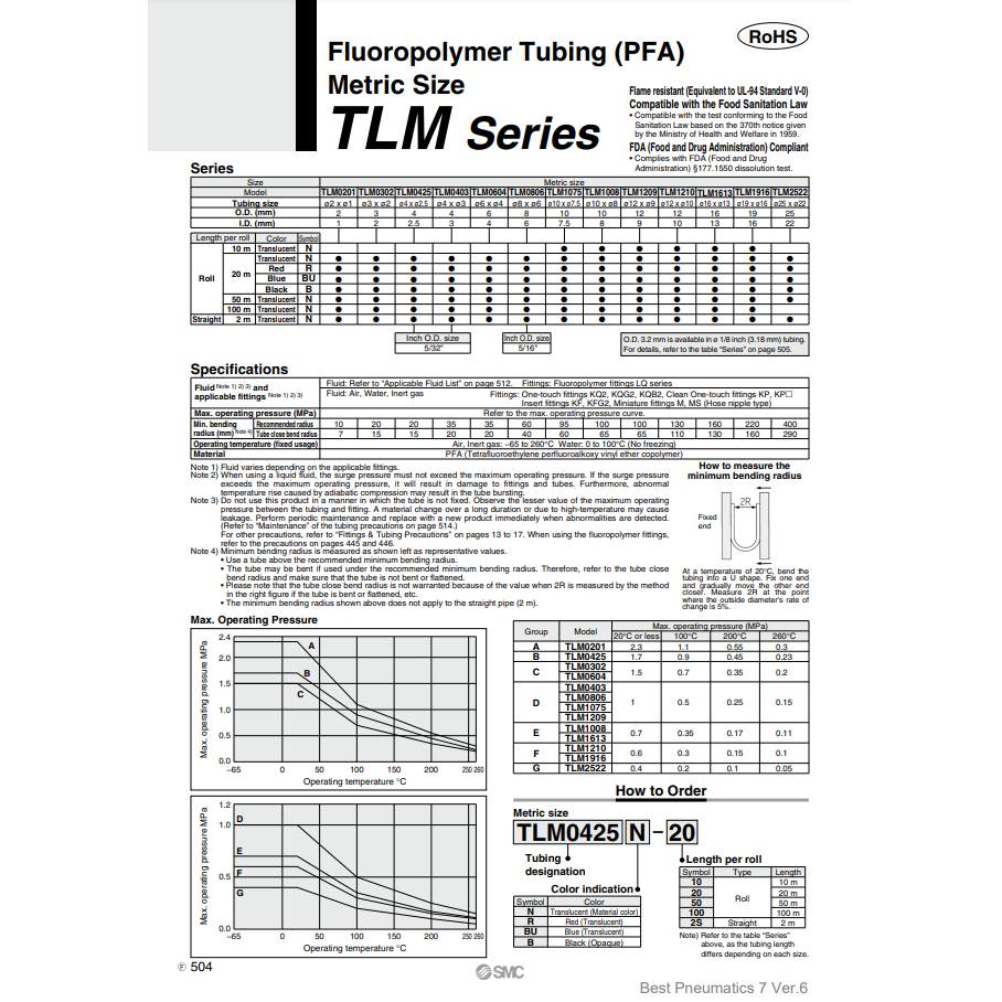 SMC Pneumatics FEP Tubing TLM0403N-50 Fluoropolymer Plastic Tubes