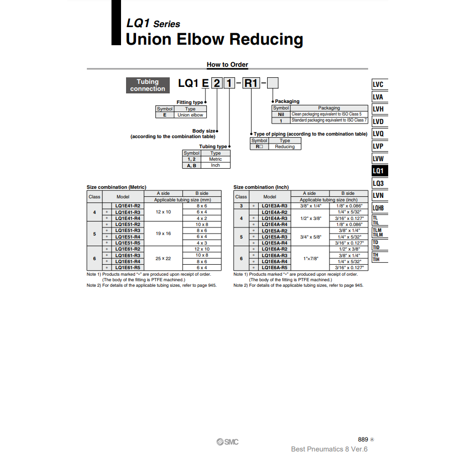 SMC Pneumatics Fluoropolymer Fittings LQ1E4A-R2 High Performance Pneumatic Parts