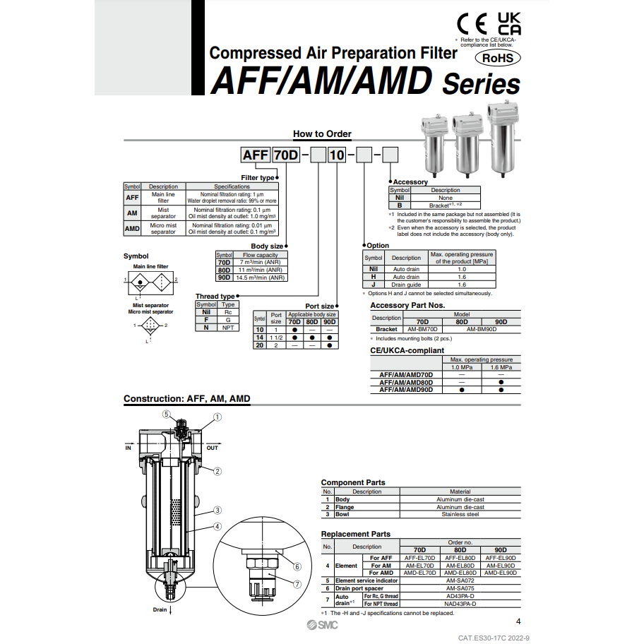 SMC Pneumatics Industrial Compressor Parts AM90D-20 Mist Separator
