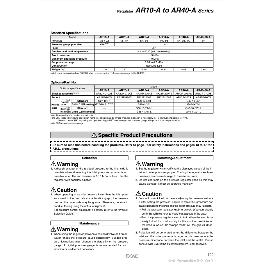 SMC Pneumatics Modular Type AR20-02B-1R-A Pressure Regulator