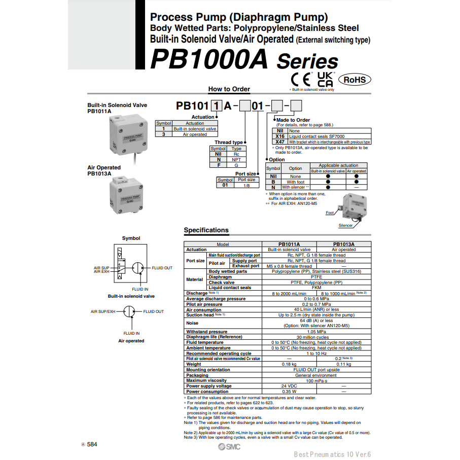 SMC Pneumatics PB1011A-N01-B Process Pump Hydraulics Pump Product Category