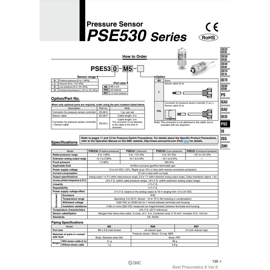 SMC Pneumatics PSE532-R06-C2L High Precision Pressure Sensor