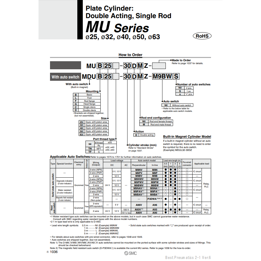 SMC Pneumatics Plate Cylinder MUL40-250DMZ Pneumatic Parts