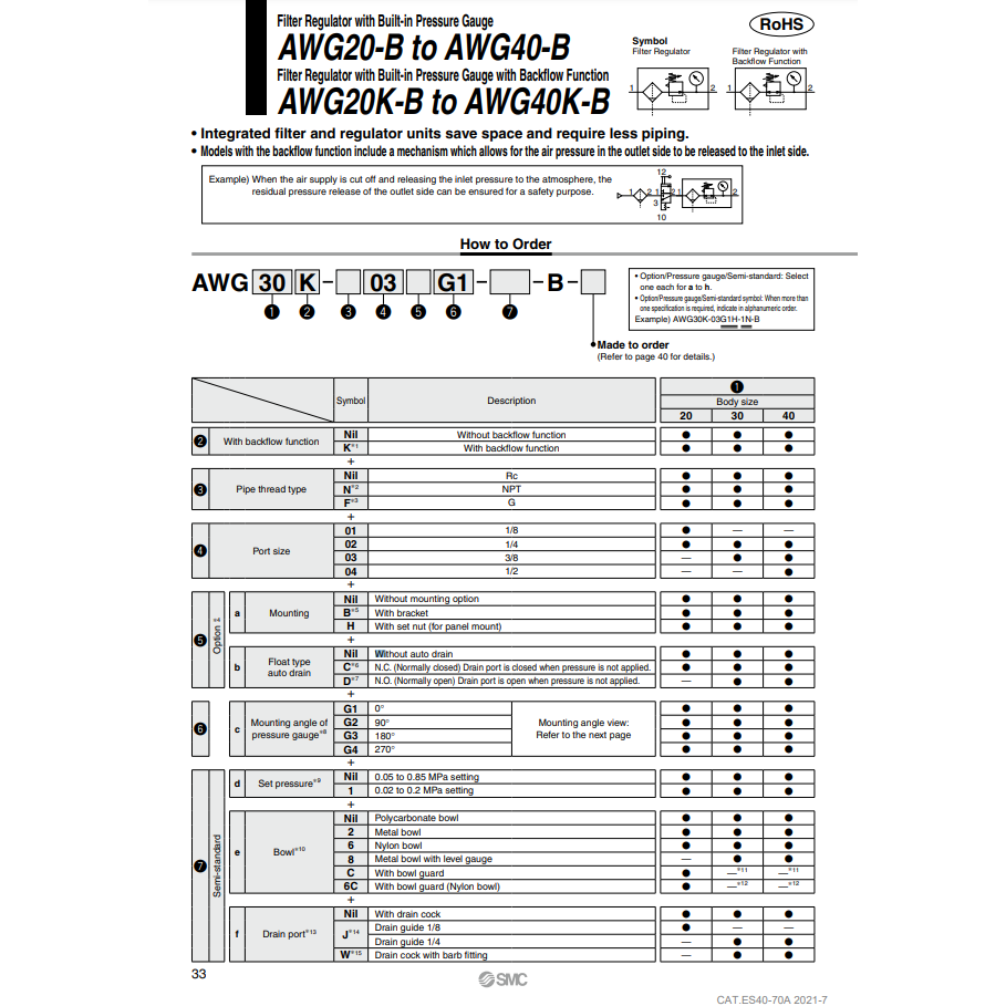 SMC Pneumatics Pressure Regulator Filter Model AWG20-01BCG1-B