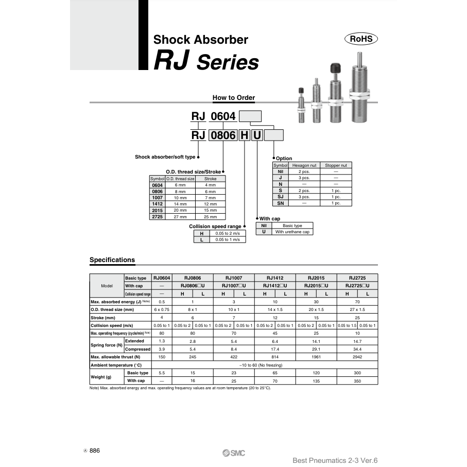 SMC Pneumatics RJ1412HJ Shock Absorber