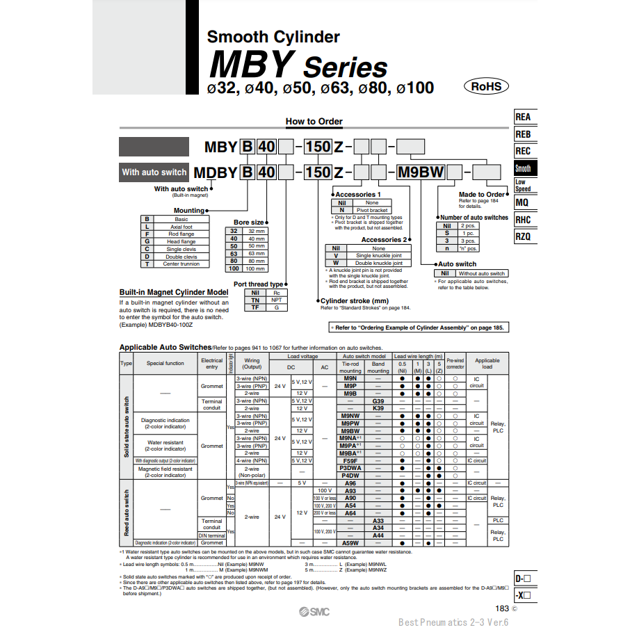 SMC Pneumatics Smooth Cylinder MDBYL63-100Z Pneumatic Parts
