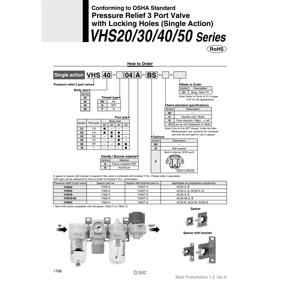 SMC Pneumatics VHS20-F02A 3 Port Relief Valve Pressure Reducing Valve