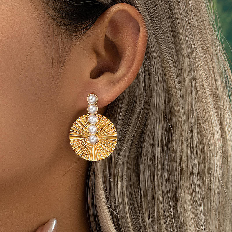 SMC13-D1 Fashion Party Imitation Pearl Jewelry Stud Earrings Fan Shape Trend Classic Exquisite Exaggerate Women Party Gifts