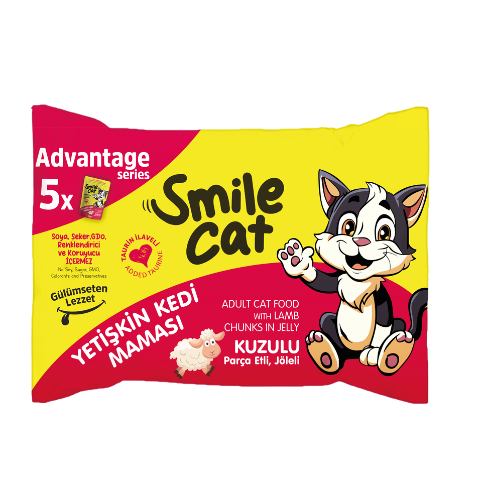SMILE Sterilised Cat Wet Food 4+1 Beef Chunks Jelly 85g Flowpack 12PCS Box with Taurine Premium Quality Cat Food