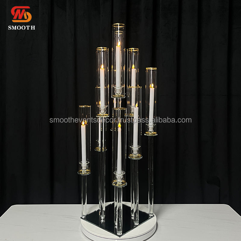SMOOTH 100cm Tall Table Centerpiece Crystal Candle Holder With 10 Arms For Events Decoration