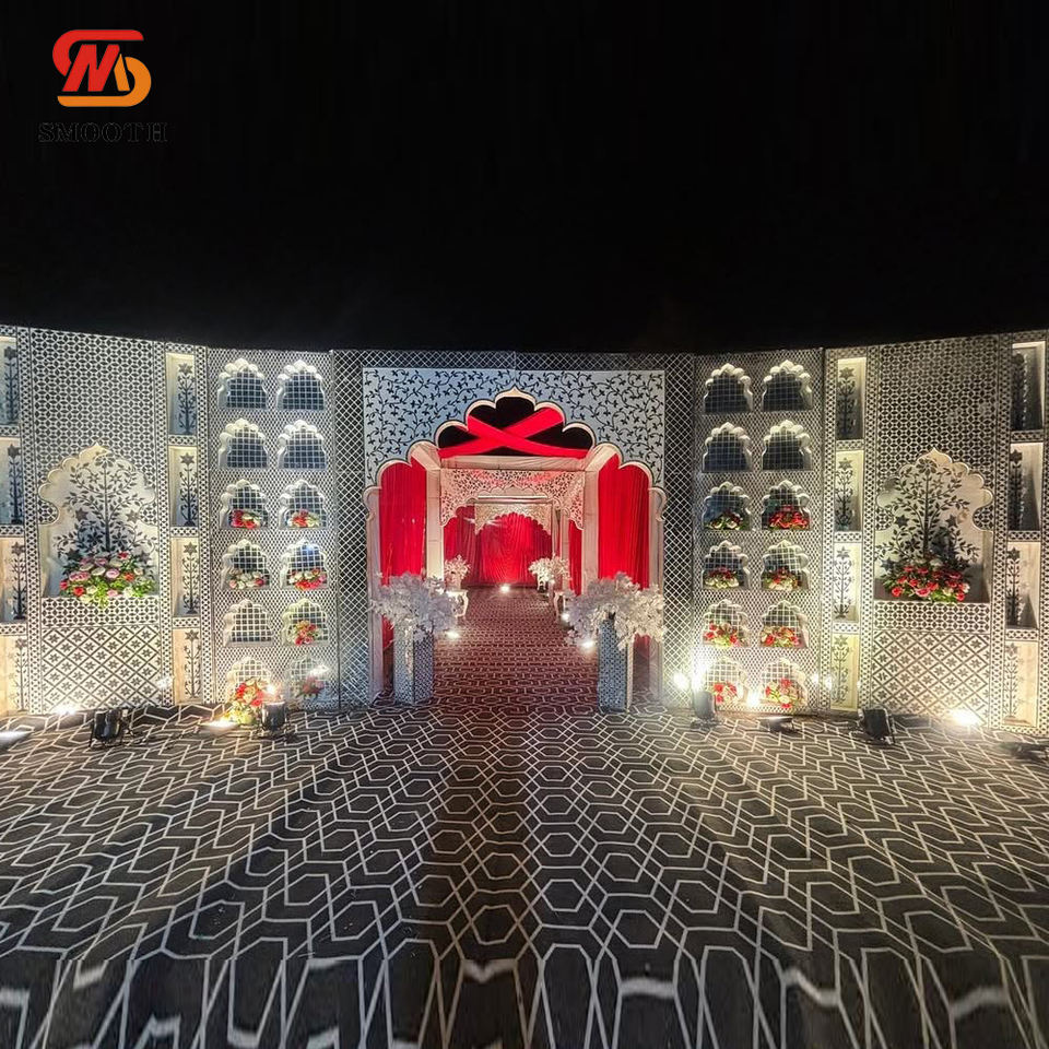 SMOOTH Arabic Sliver Mirror Custom Wedding Backdrop Wall Stand Set Event Stage Decoration Door for Party Wedding Supplier
