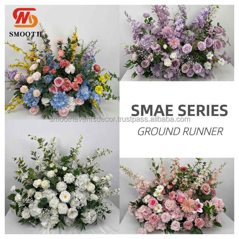 SMOOTH Artificial Table Ground Pink Flower Runner Romantic Rose Wedding Event Party Backdrop Decor