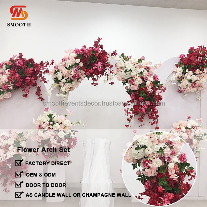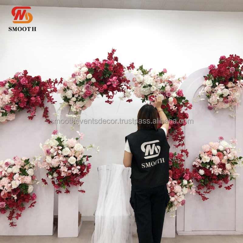 SMOOTH Best Seller Cheap Wholesale Hot Pink Flower Arch Runner Arrangement Wedding Artificial Flowers Decoration