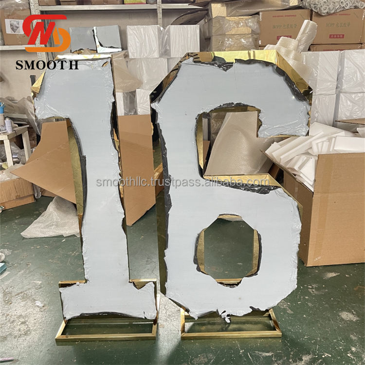 SMOOTH Birthday Party Backdrop Decoration Marquee Metal Number Shinny Gold Large Stainless Steel Letters Numbers