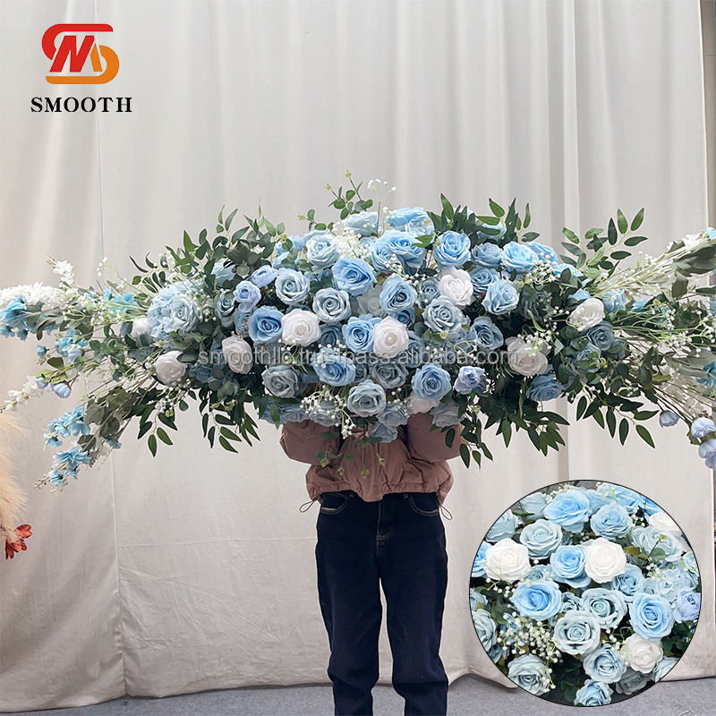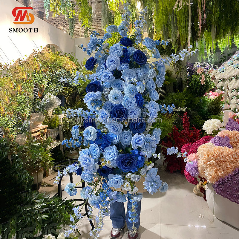 SMOOTH Custom Design Wedding Events Backdrop Decoration Blue Artificial Flower Arrangement