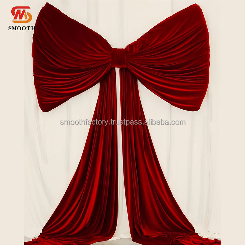 SMOOTH Custom Long Trailing Red Velvet Bow Wedding Party Birthday Events Props Decoration Large Fabric Bow