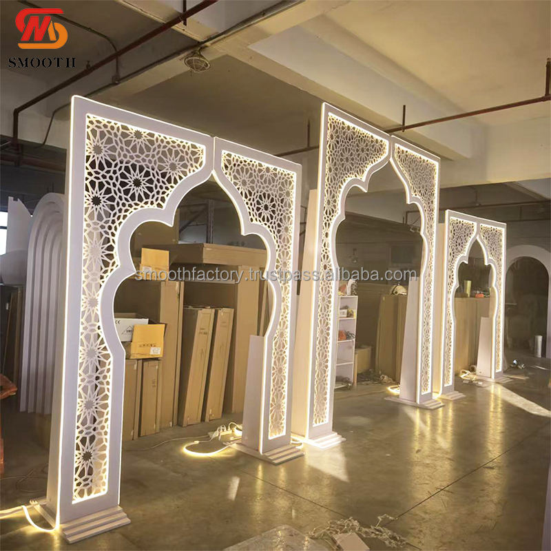 SMOOTH Custom White Moroccan Style Archway Decor Hollow Wedding Arch with Light Events Party Stage Decoration Backdrop