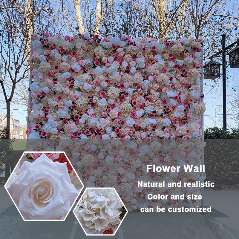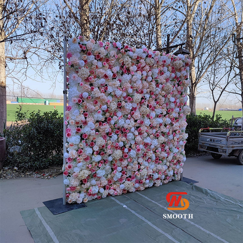 SMOOTH Customized Holy Pink White Rose Flower Wall Backdrop Silk Artificial Decorative Flower Wall